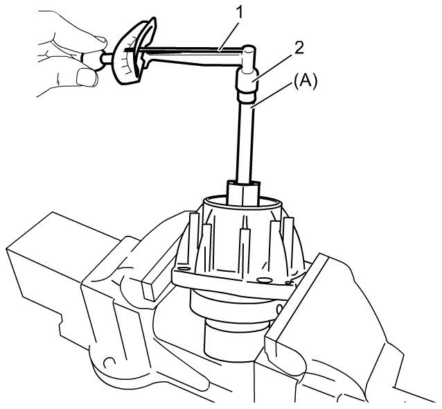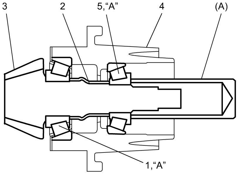 4) Apply gear oil "A" to front taper roller bearing (1).