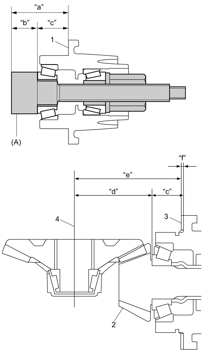 - "a": height from transfer output retainer installation surface (1) to pinion dummy top (mm (in.))
