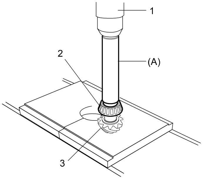 3) Press-fit front taper roller bearing (2) to bevel pinion (3) by using special tool and hydraulic press (1).