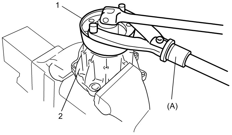 a) Apply gear oil "A" to taper roller bearing (front (1) and rear (2)).