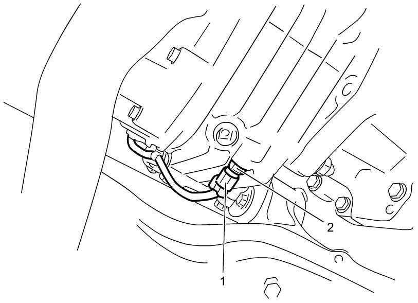 3) Disconnect transfer oil temperature sensor connector (1), and remove transfer oil temperature sensor (2).