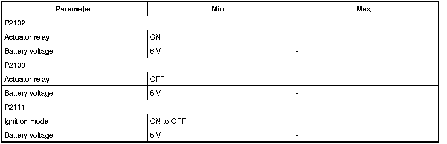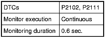 The IAC is checked throttle valve opening by monitoring the closed-loop idle speed comparing with the desired idle rpm. If the idle rpm is higher than the desired idle rpm by 200 rpm or lower than the desired idle rpm by 100 rpm, an IAC malfunction is detected. (P0507, P0506)