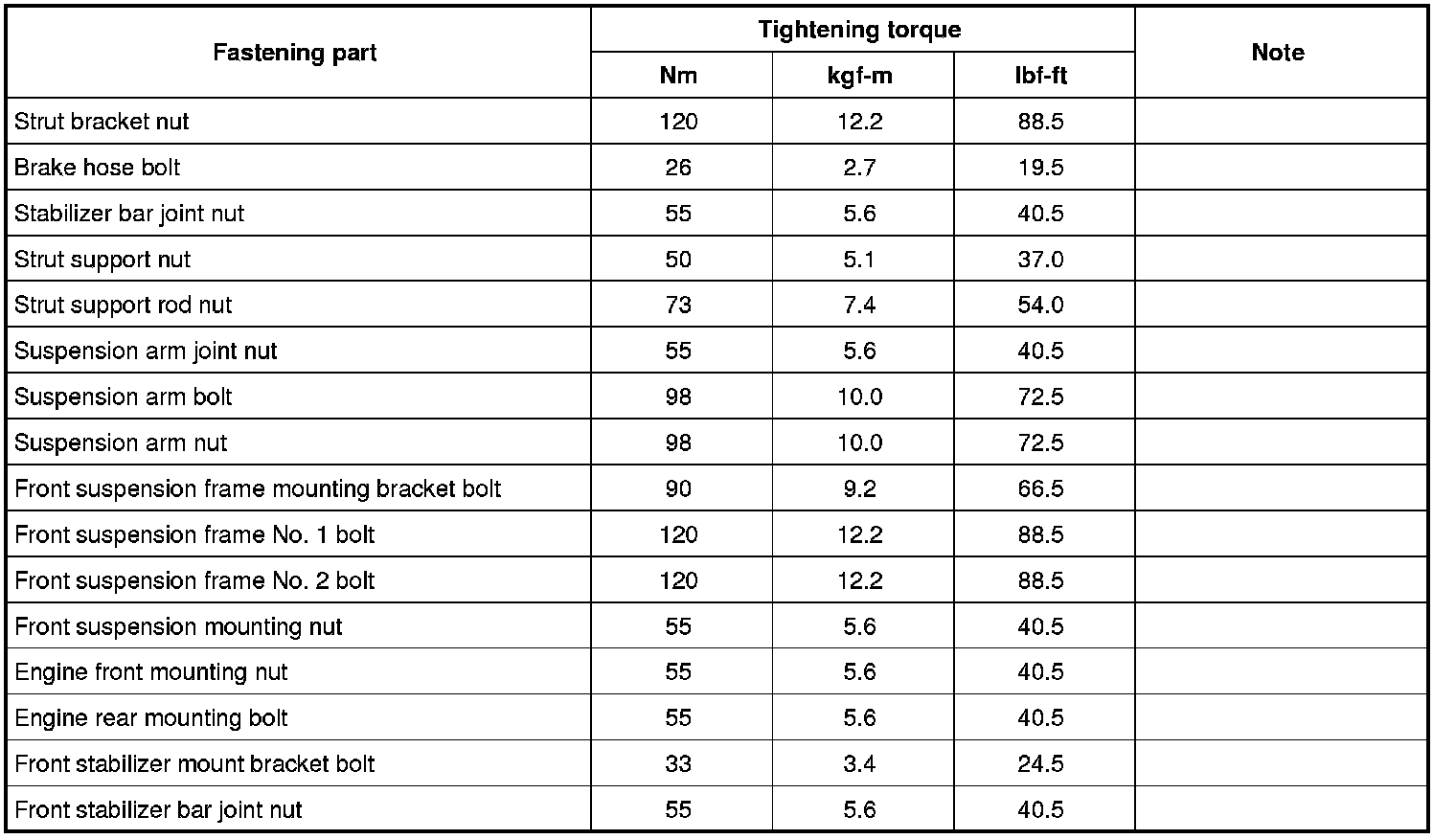 For the tightening torques of fasteners not specified in this section, refer to Fastener Information Fastener Information.