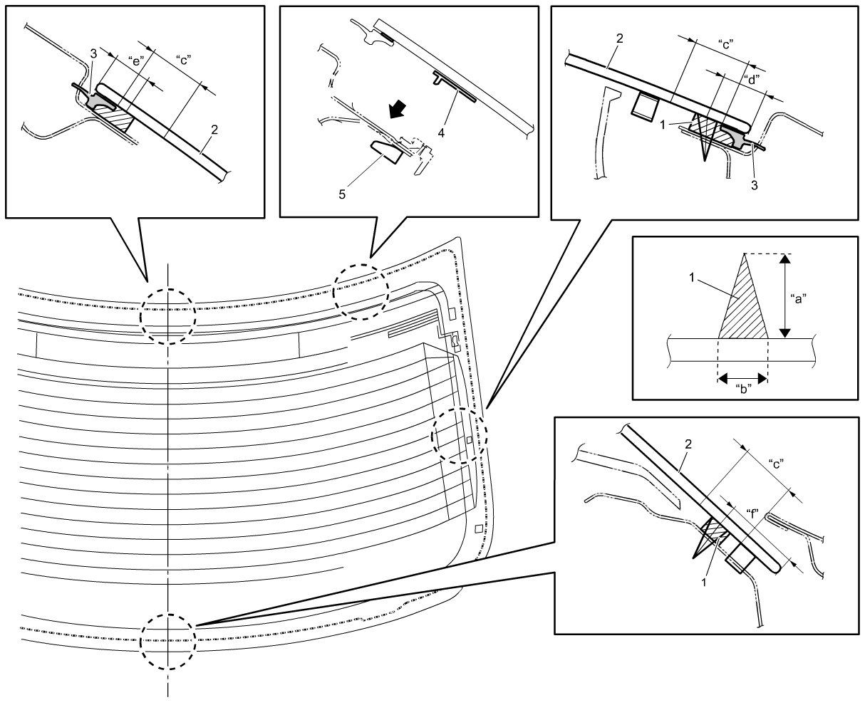 Preparation, removal and installation procedure are basically the same as Windshield Removal and Installation Windshield Removal and Installation