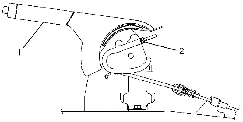 2) Loosen adjusting nut (2) until parking brake cable tension is no.