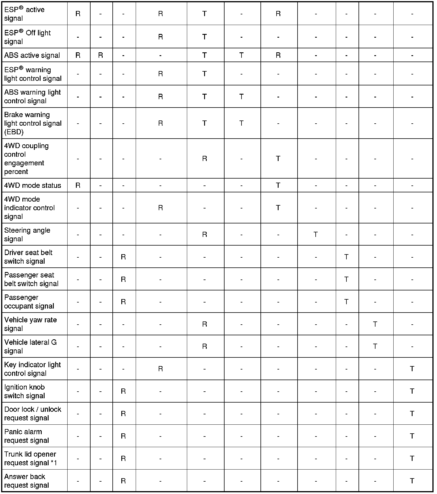 - R (Receiving): All control modules connected with CAN communication lines receive all information CAN communication line. Each control module selects only what is necessary and use it for its control function.