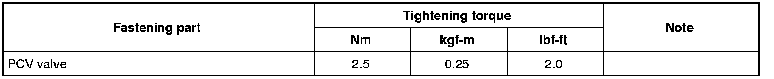 Tightening Torque Specifications