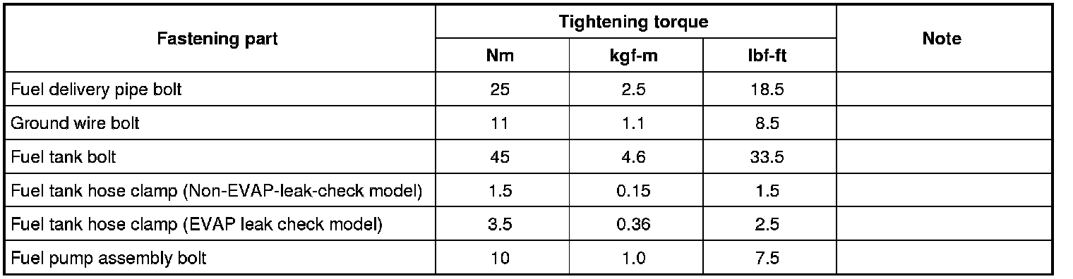 For the tightening torques of fasteners not specified in this section, refer to Fastener Information Fasteners Information.