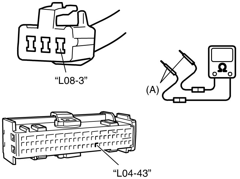 Measure resistance between "L04-43" and "L08-3" terminals.