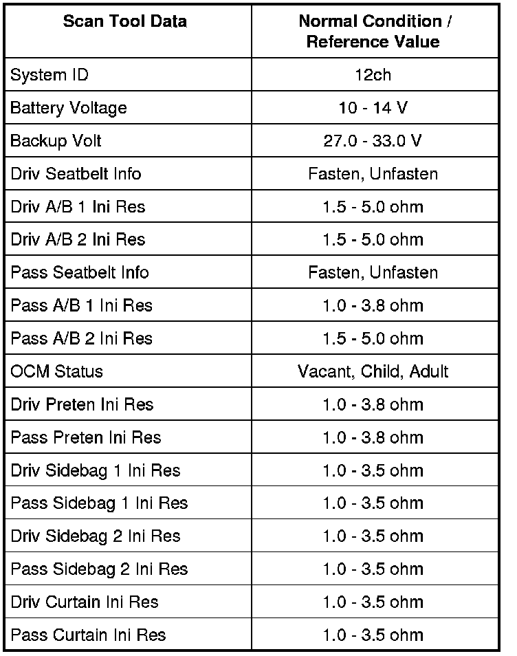 Pass Sidebag 2 Ini Res (Passenger-side rear side-air bag initiator resistance) (ohm)