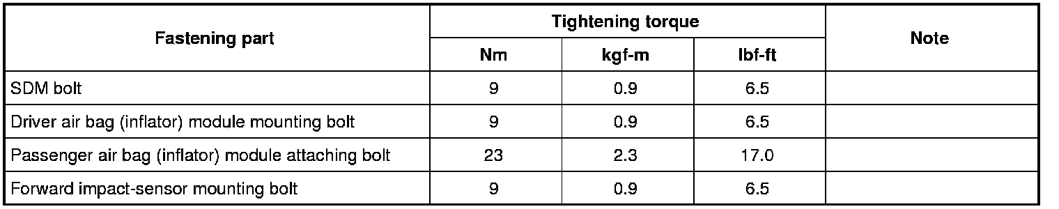 Tightening Torque Specifications