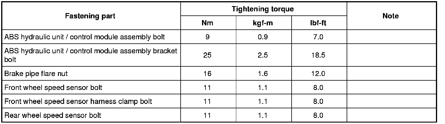 Tightening Torque Specifications