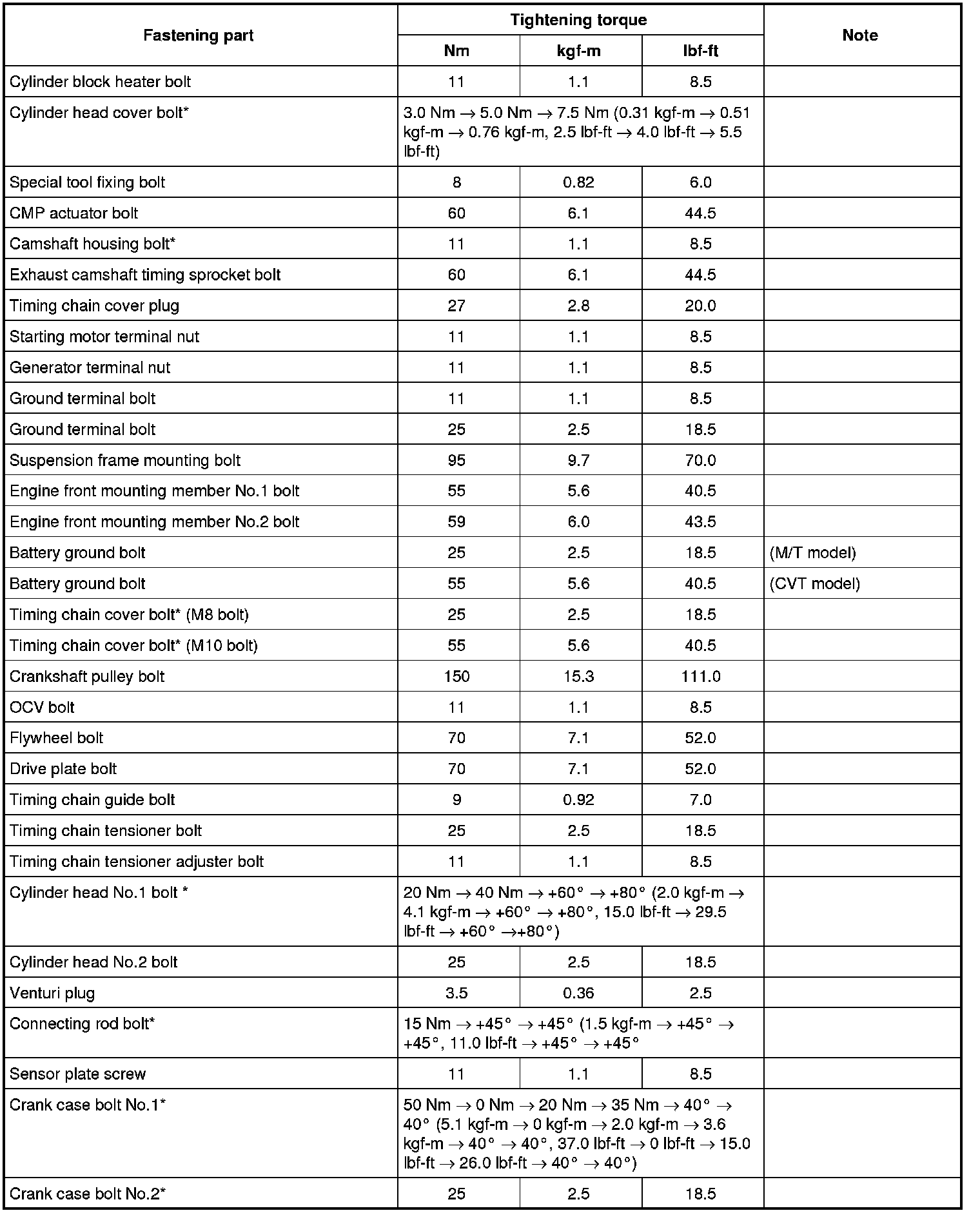 For the tightening torques of fasteners not specified in this section, refer to Fastener Information Fasteners Information.