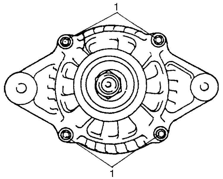 9) Remove three screws (1) and generator "B" terminal nut (2).