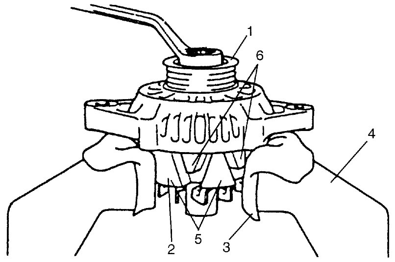 Be sure to hold the rotor in the vise via a clean cloth at the iron parts (5). Never hold the rotor at other parts (6).