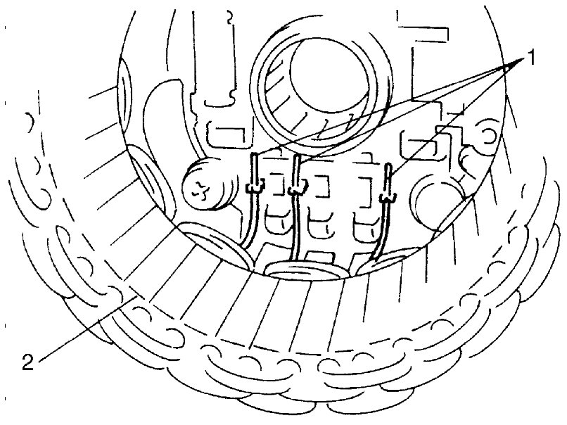 11) Unsolder stator leads (1) and remove stator (2) from rectifier assembly.
