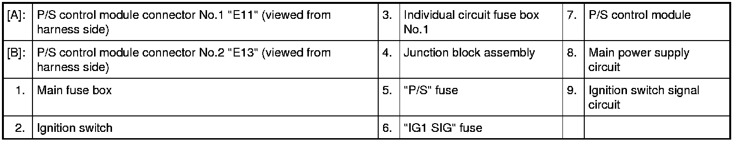 If OK, check "P/S" fuse and "IG1 SIG" fuse for blowing.