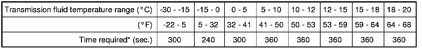 *: Time required to raise the transmission fluid temperature by 1 °C (33 °F).