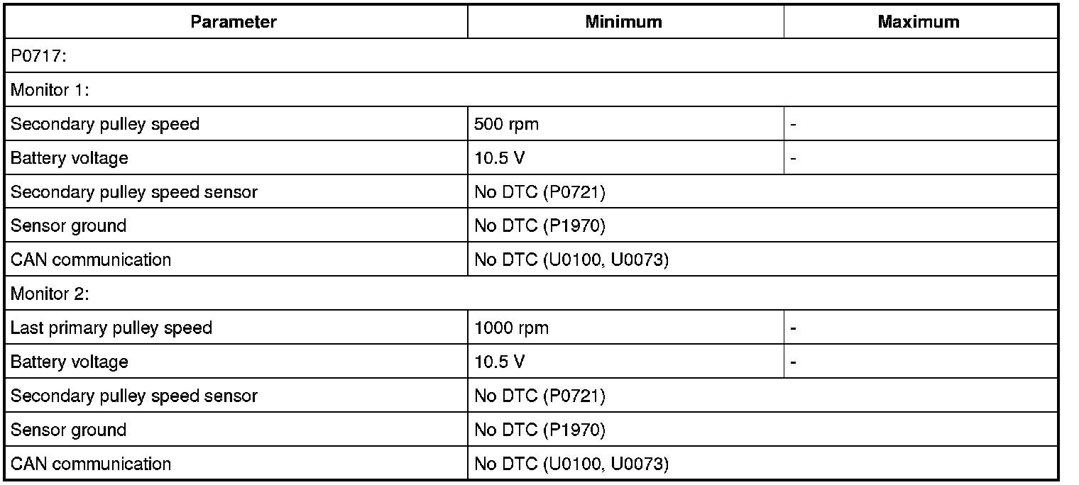 - Primary pulley speed sensor (P0716, P0717)