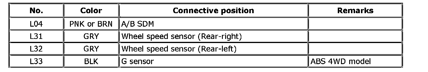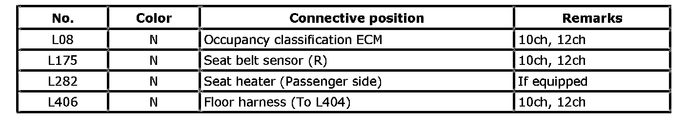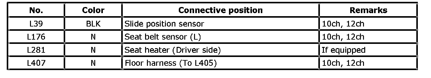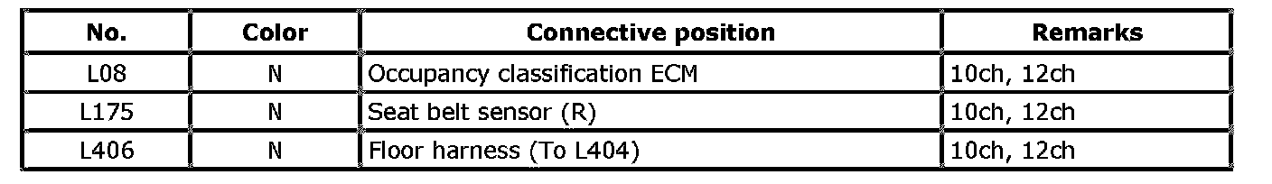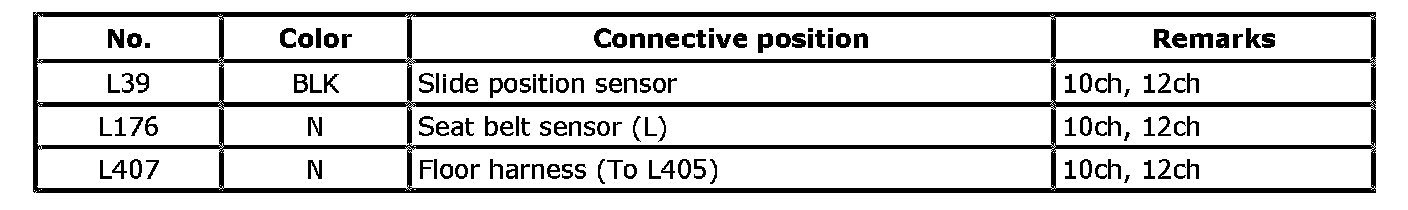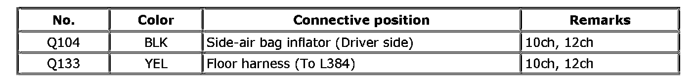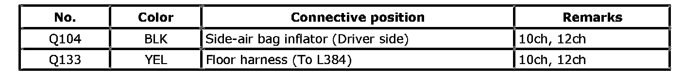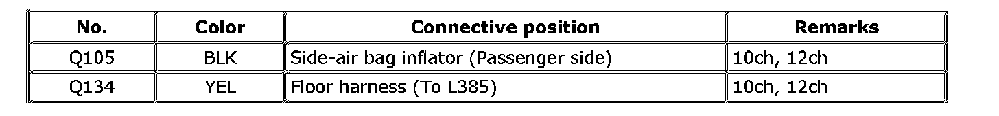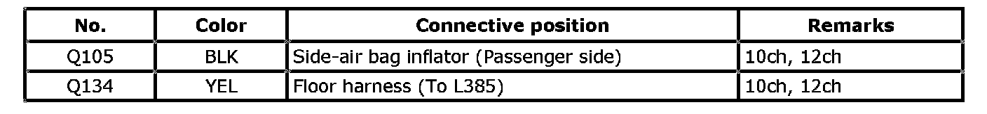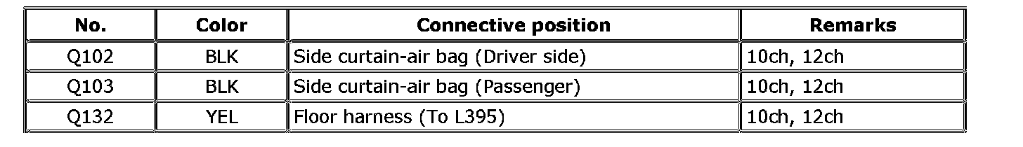 FloorL: Floor Harness, Coupling Harness, Seat Sensor (R) Wire, Seat Sensor (L) Wire / Q: Side Curtain-Air Bag Wire, Side-Air Bag (Driver Side) Harness, Side-Air Bag (Passenger Side) Harness / R: Fuel Pump Wire (Hatchback)