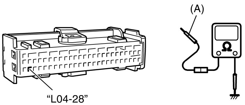 Measure resistance between "L04-28" terminal and vehicle body ground.