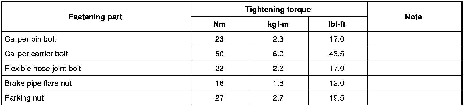 Tightening Torque Specifications