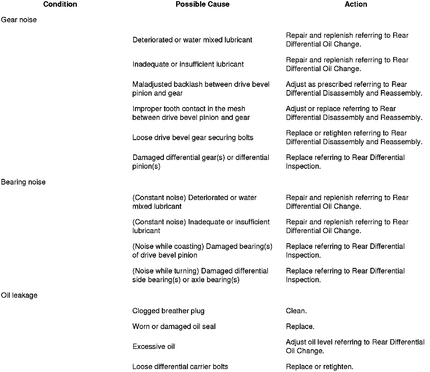 Rear Differential Symptom Diagnosis