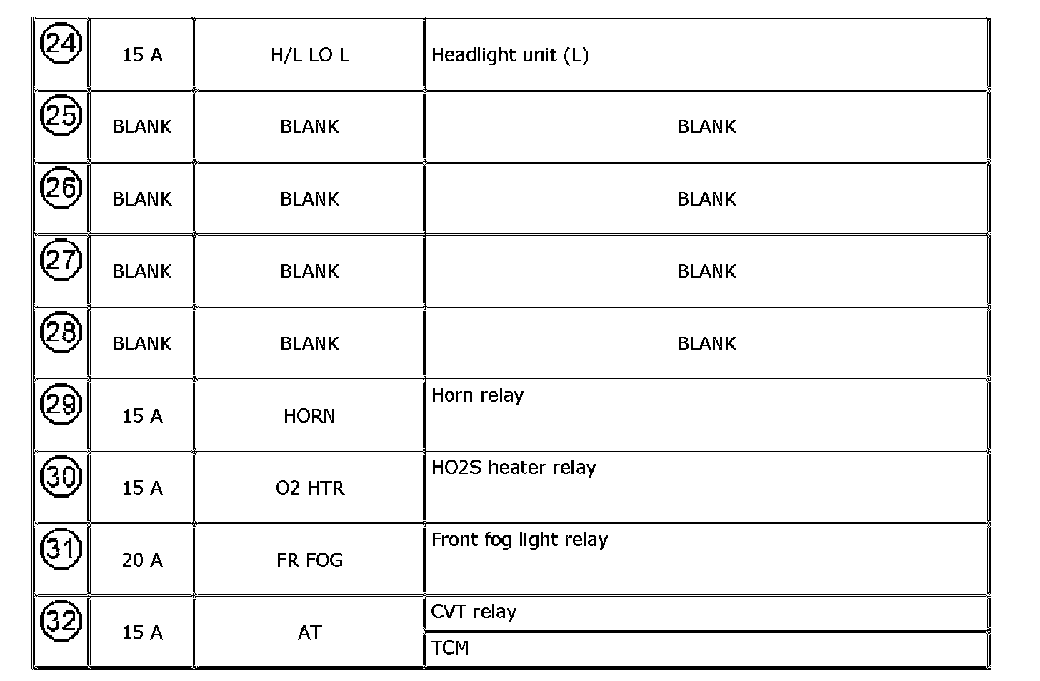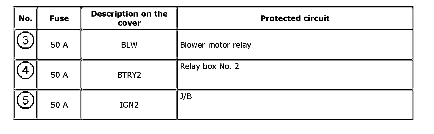 Individual Circuit Fuse Box No. 3 (In Relay Box No. 2)