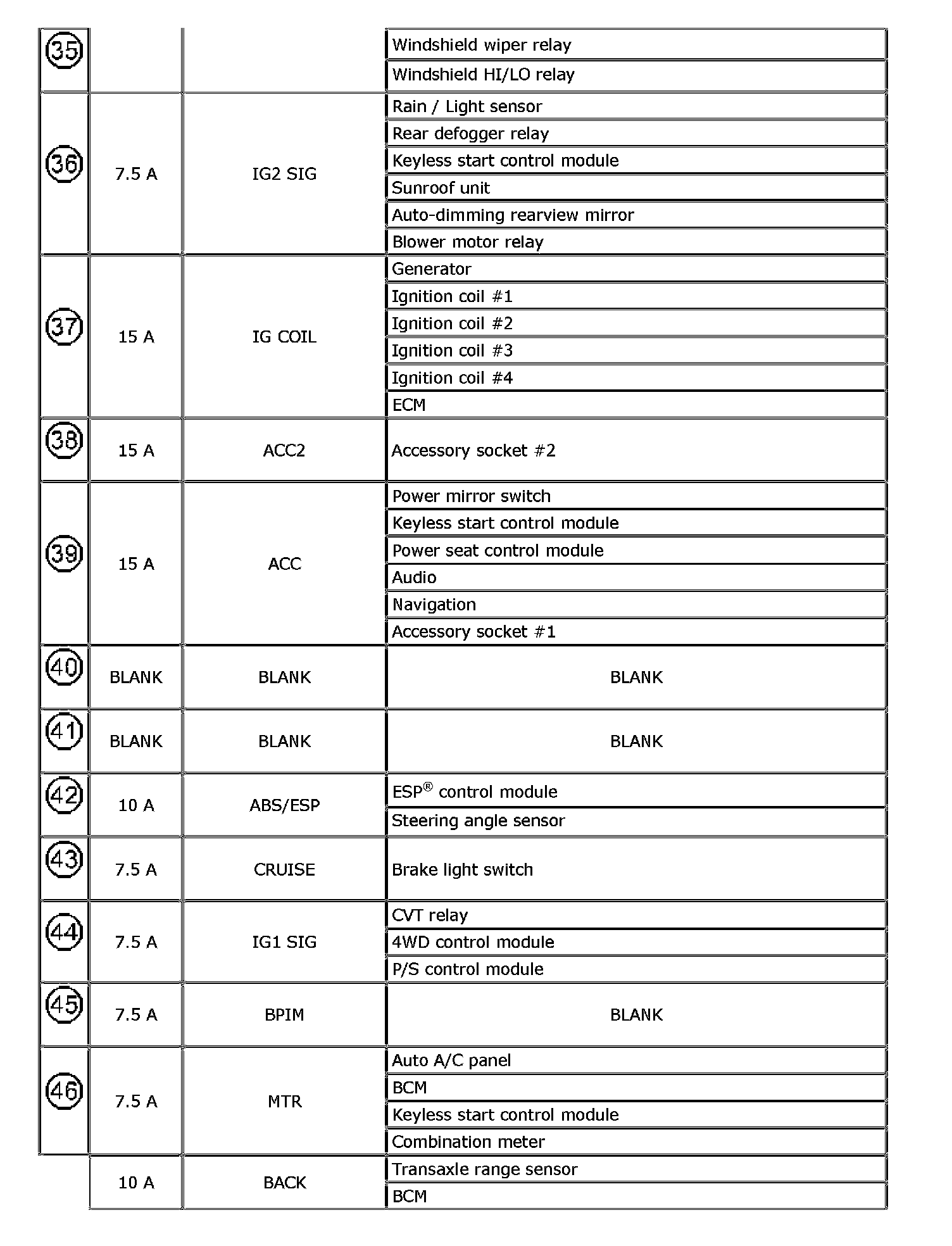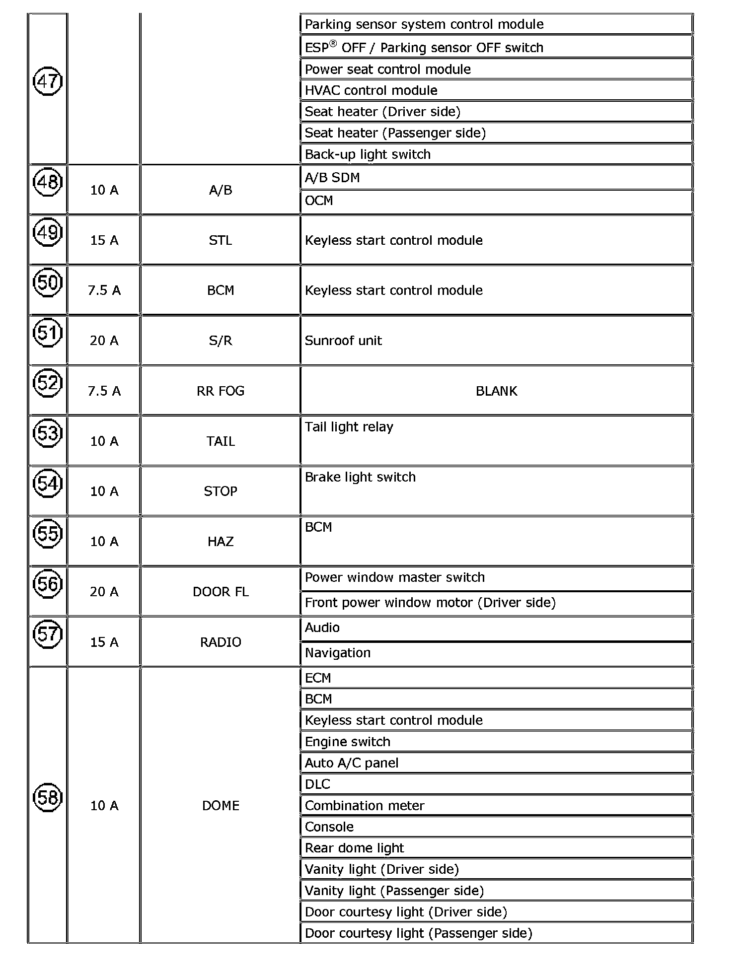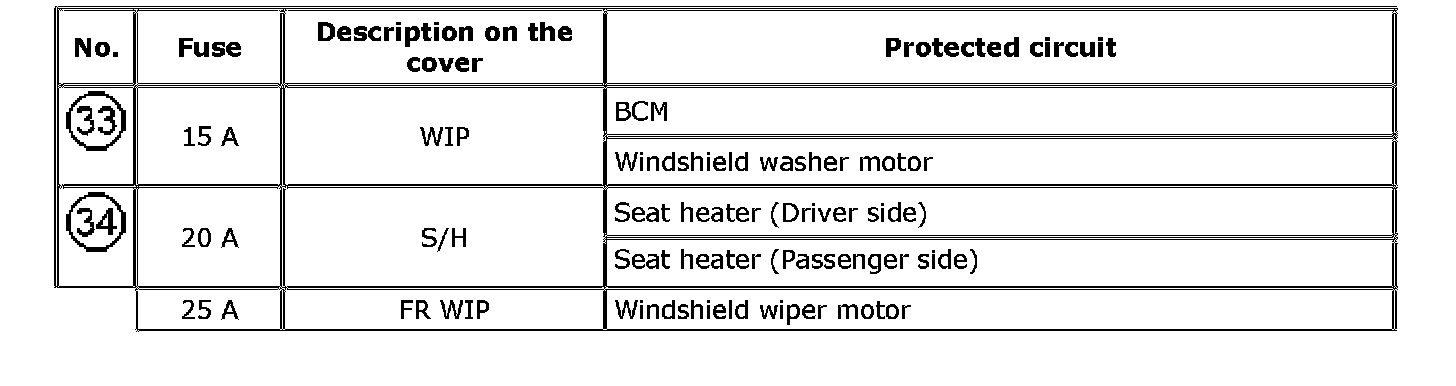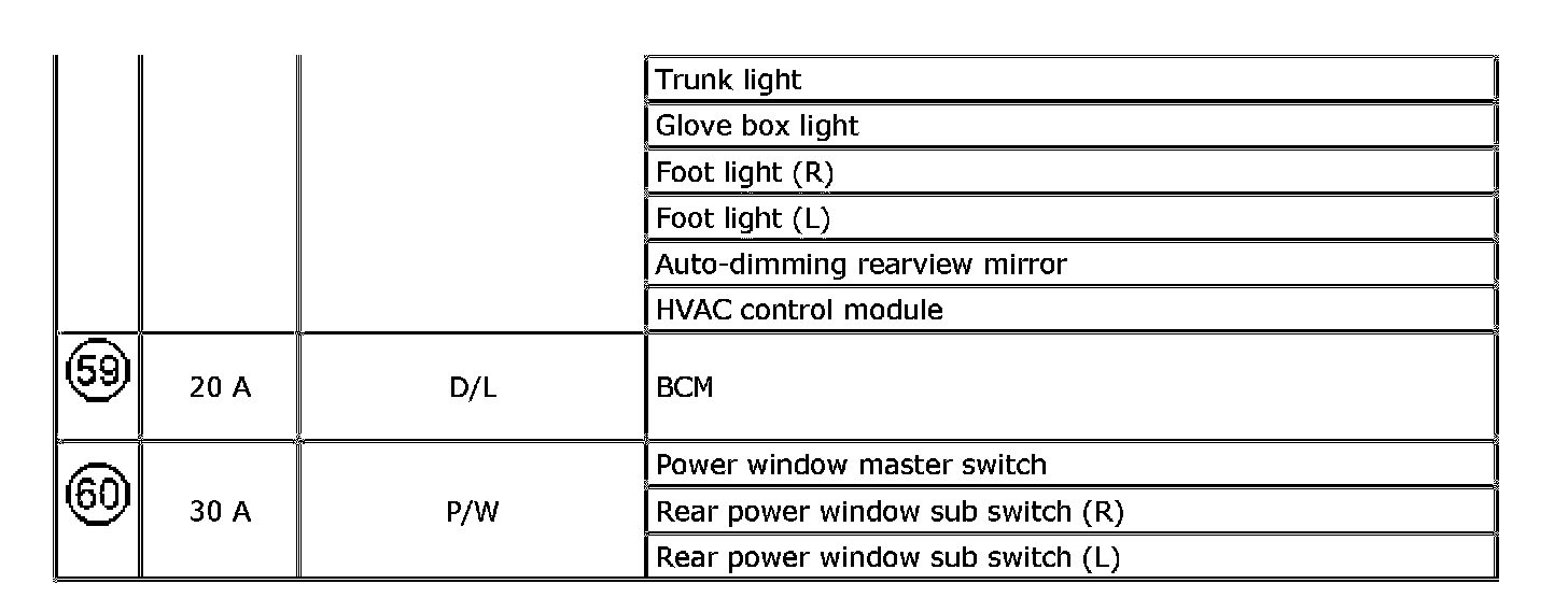 The chart below describes what parts each fuse protects.