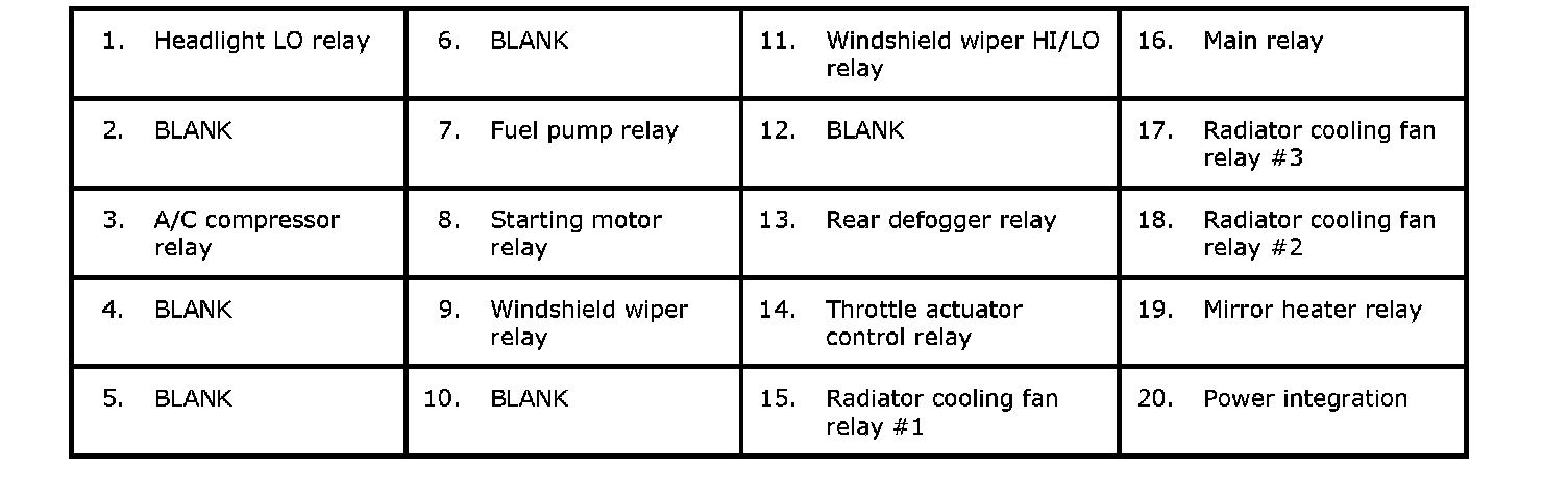 Individual Circuit Fuse Box No. 1, Power Integration (In Relay Box No. 1)
