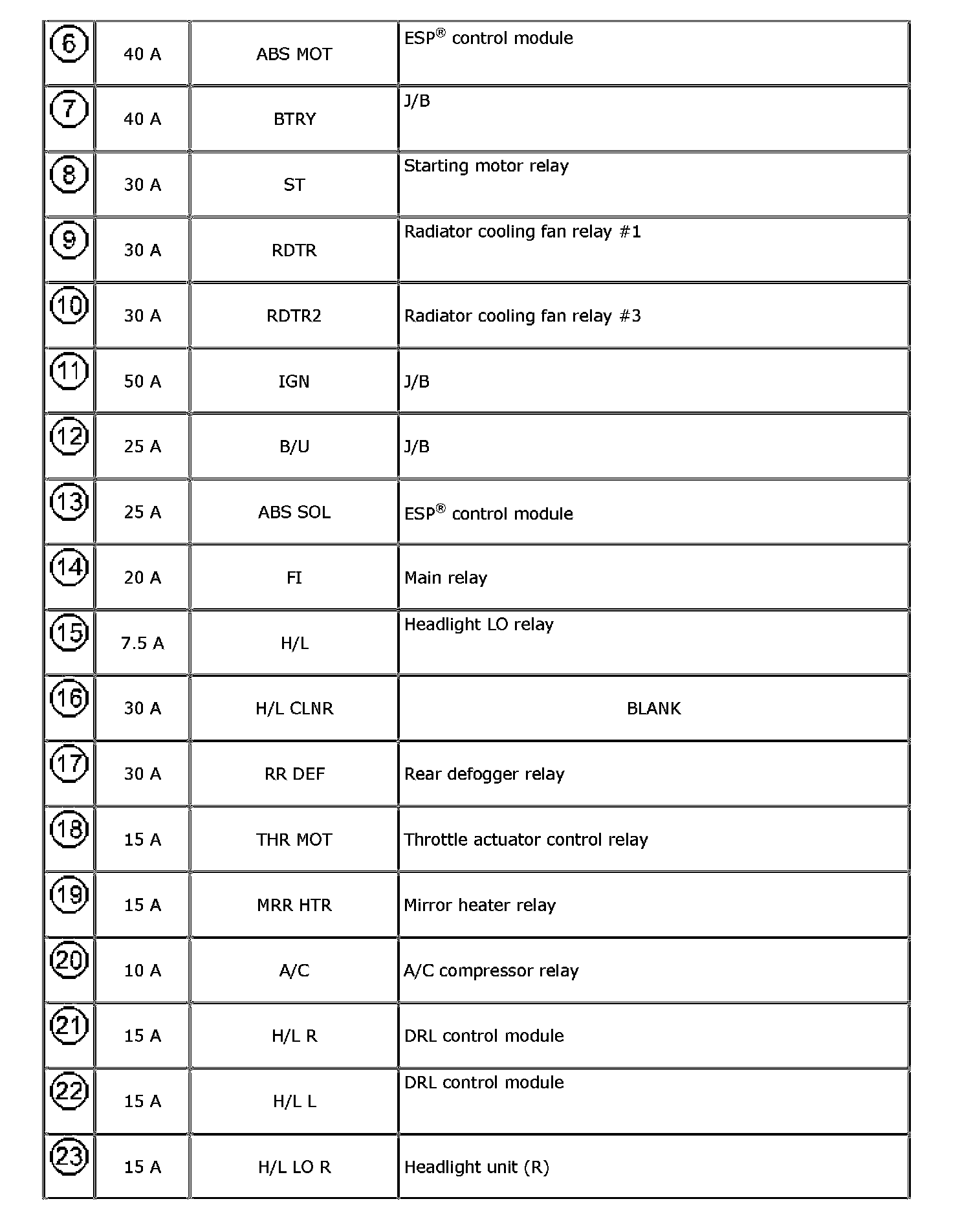 Individual Circuit Fuse Box No. 2 (In J/B)