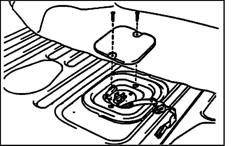 1. Remove 6 screws and rear floor mat trim plate, turn over the floor mat to access the rear floor service hole cover.