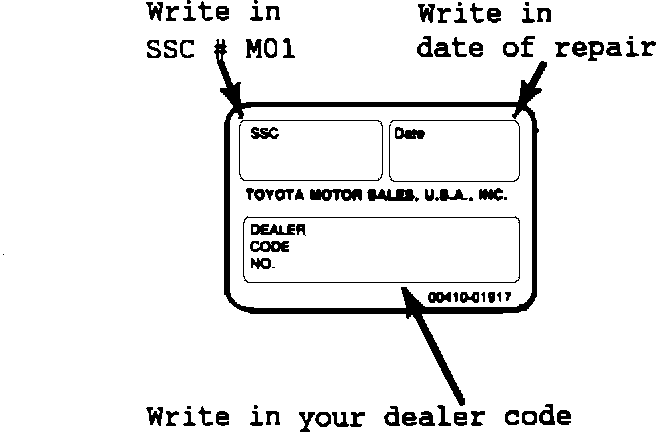 1. After completing repair and before returning vehicle to the customer an SSC completion label that is enclosed in the owner's letter must be affixed to the firewall (next to the brake booster. Make sure that the surface is clean and dry to ensure proper adhesion of the label.