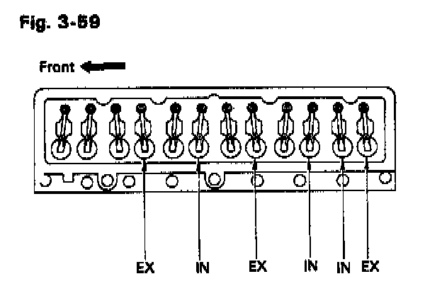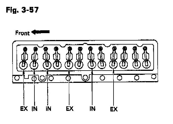 The valve clearance is measured between the valve stem and rocker arm adjusting screw. Adjust only the valves indicated by arrows.