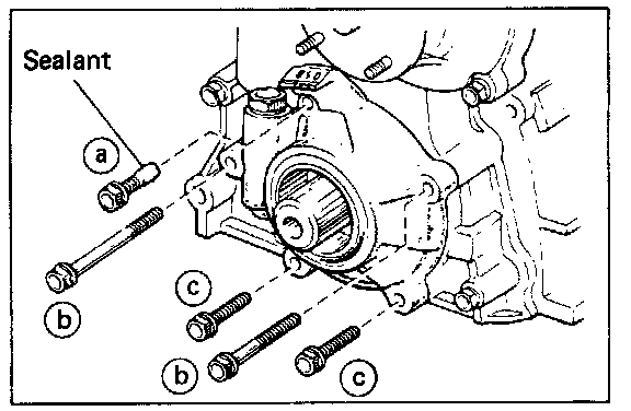 "b" bolts: 14 ft.lb. (19 Nm)