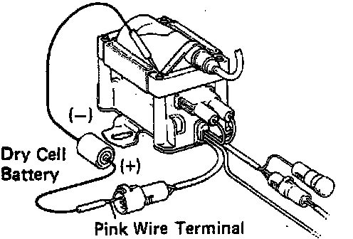 (d) Using a dry cell battery (1.5 V), connect the positive (+) pole of the battery to the pink wire terminal and the negative (-) pole to the white wire terminal.