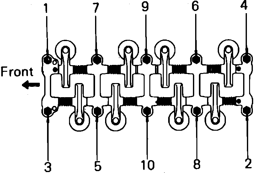Fig. 45 Cylinder head bolt removal sequence. 22R, 22R-E & 22R-TE engines: