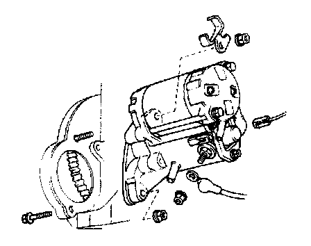 4. Remove the nut and bolt, and remove the starter motor from the flywheel bellhousing.