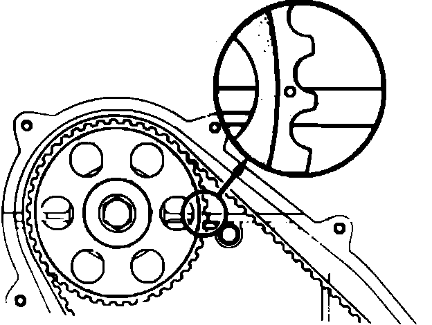 Fig. 11 Aligning TDC mark on camshaft timing sprocket with top end of cylinder head: