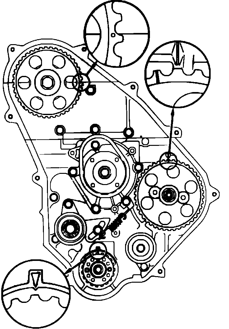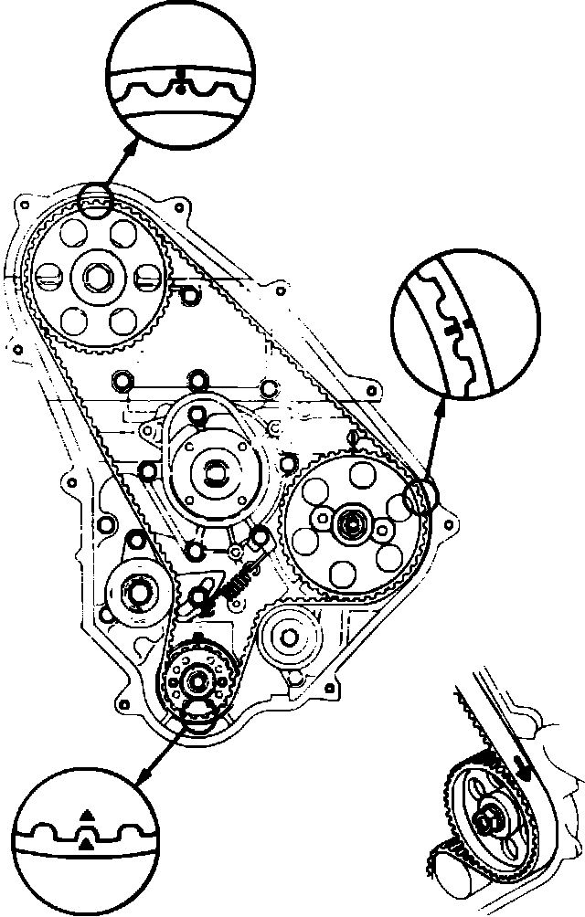 b. Ensure timing belt is completely meshed with camshaft sprocket, crankshaft sprocket and injection pump drive pulley.
