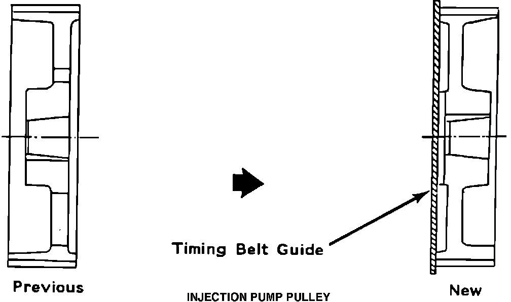 A guide plate has been added to the injection pump pulley to insure proper timing belt positioning..