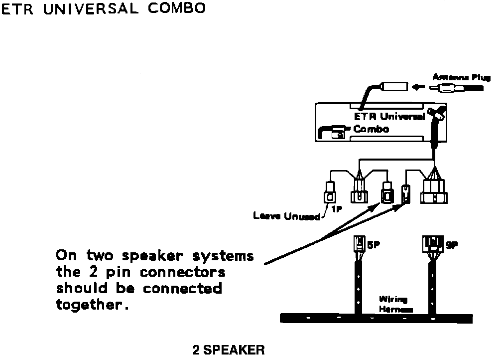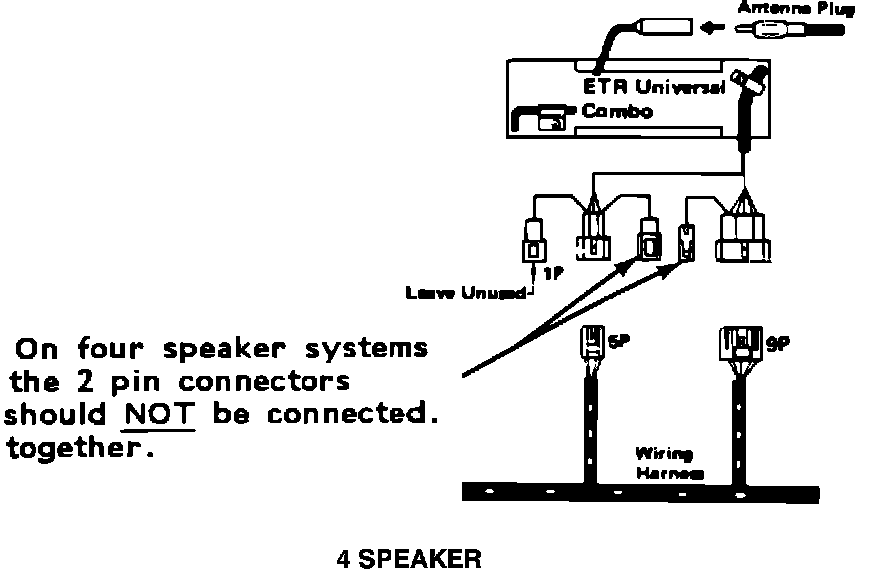 The two-pin connector on the radio harness should be connected only on vehicles with a two speaker system. It should not be connected on vehicles with a four speaker system.