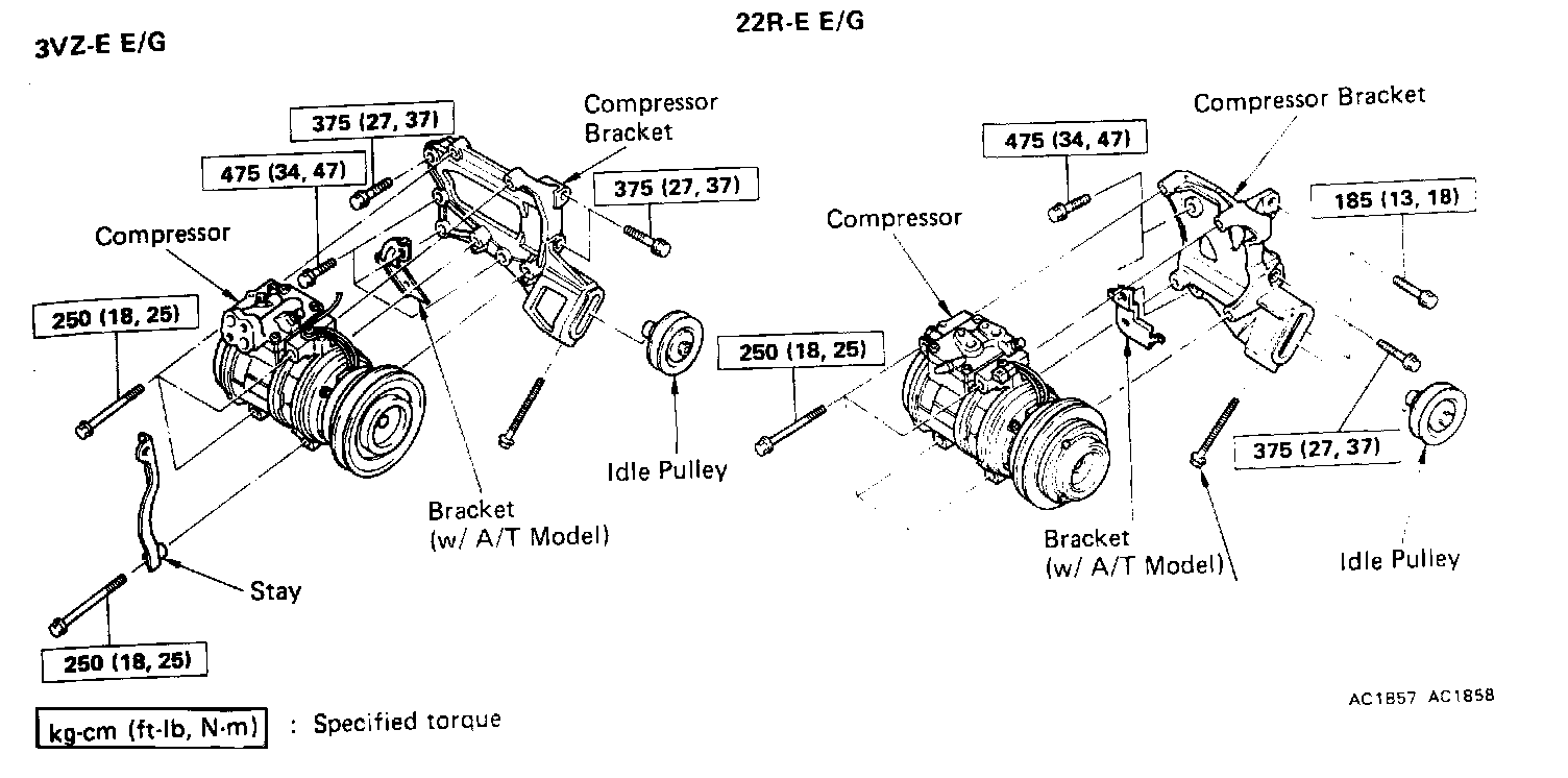 1. INSTALL COMPRESSOR WITH THREE MOUNTING BOLTS