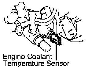 The Engine Coolant Temperature Sensor is located at the front of the cylinder head.
