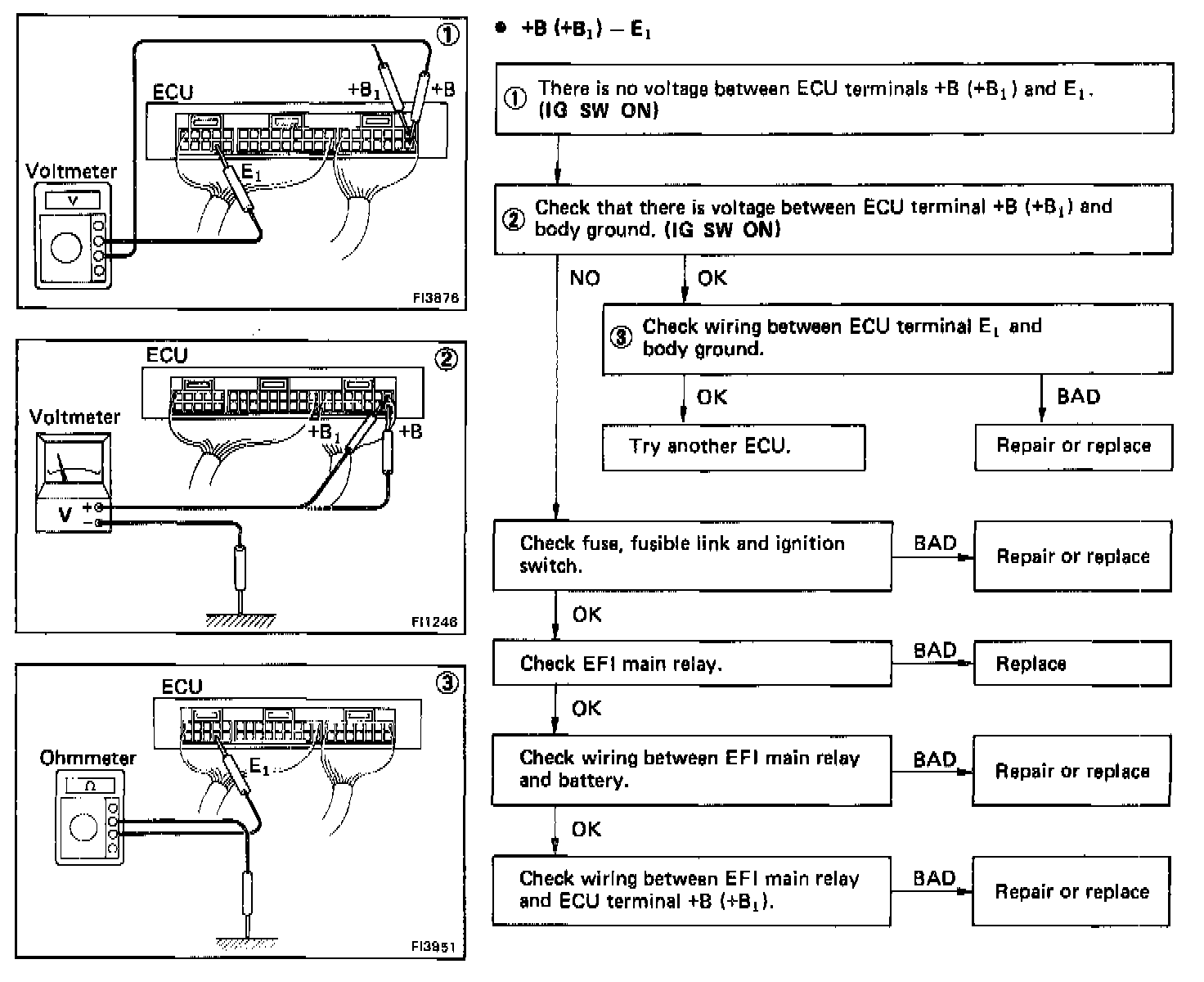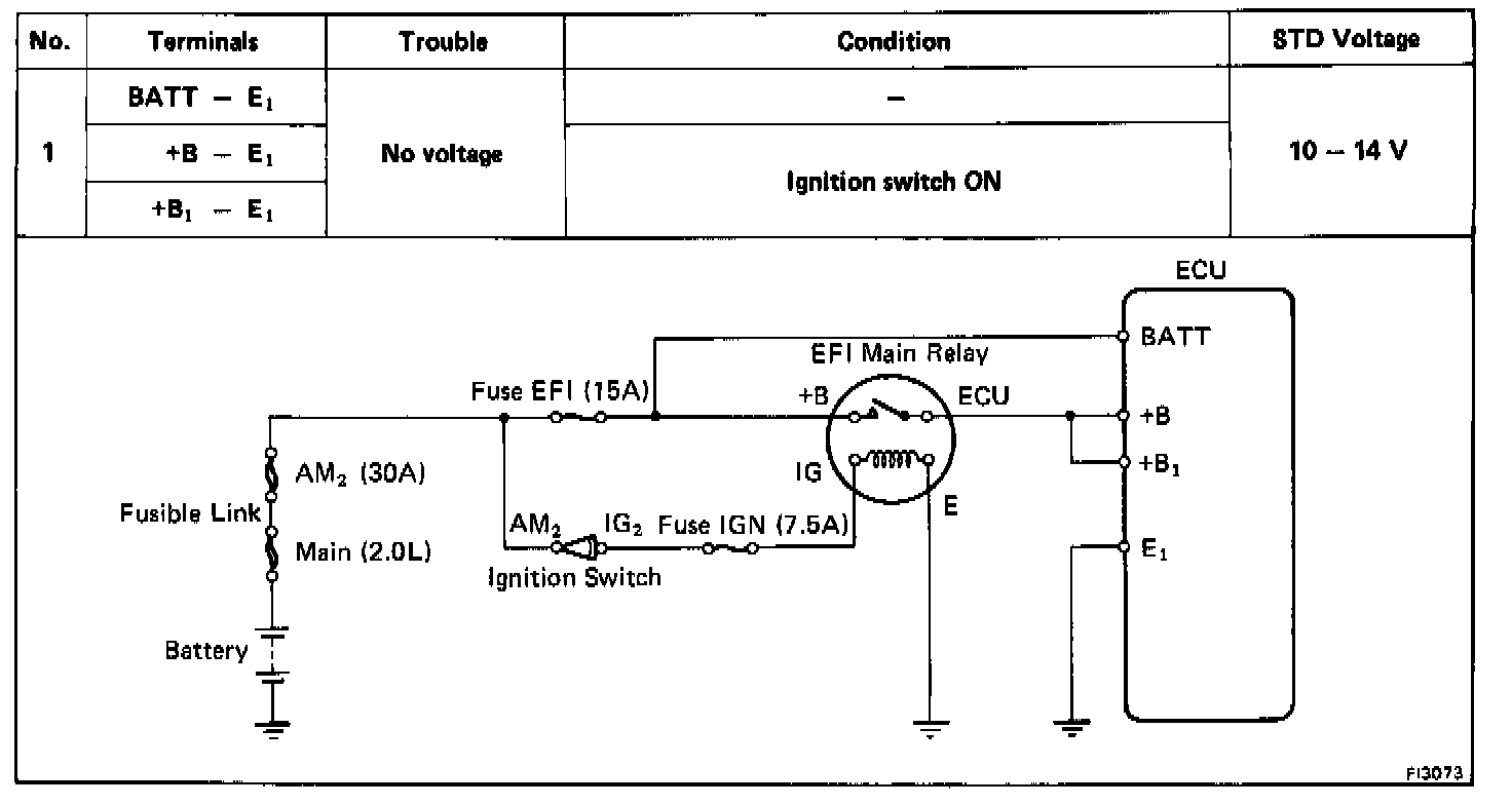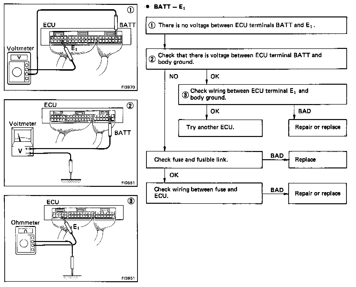 Chart No. 1 - No voltage between ECU terminals BATT and E1