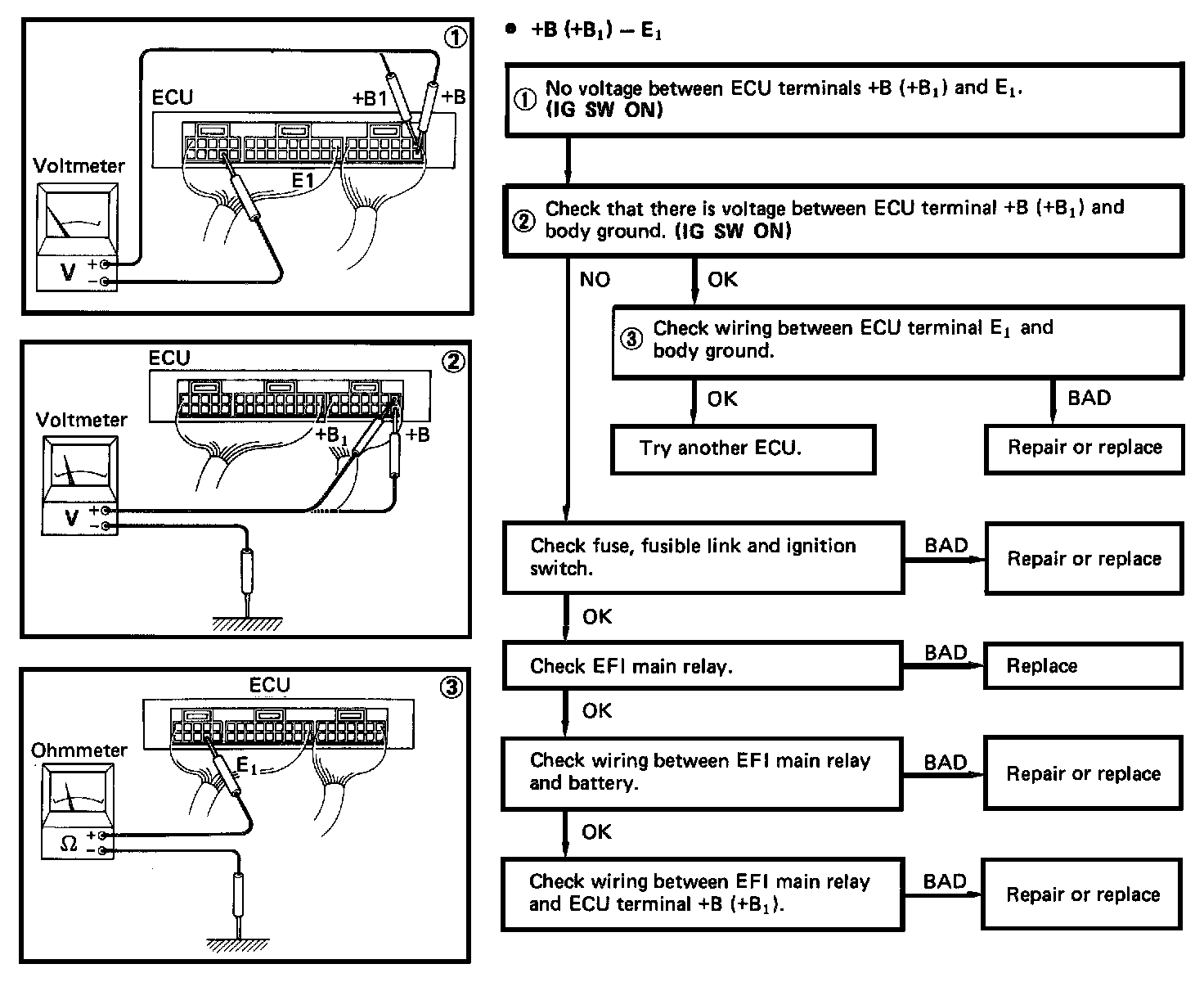 # 1. ECU Power Supply / Main Relay (+B {+B1} - E1):
