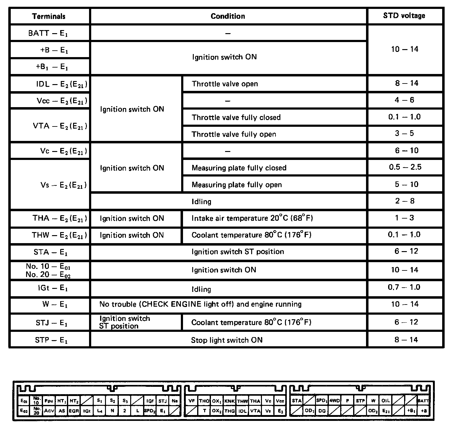 Voltage At ECU Wiring Connectors (4WD & Automatic Trans.):