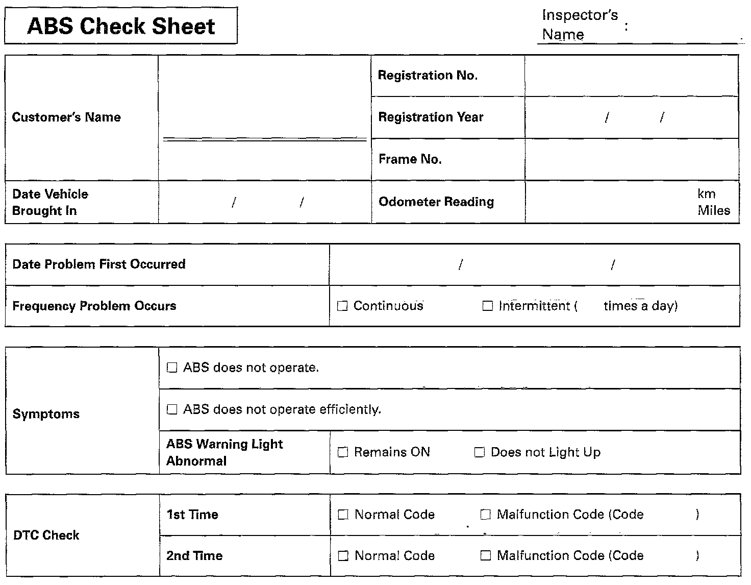 CUSTOMER PROBLEM ANALYSIS CHECK SHEET