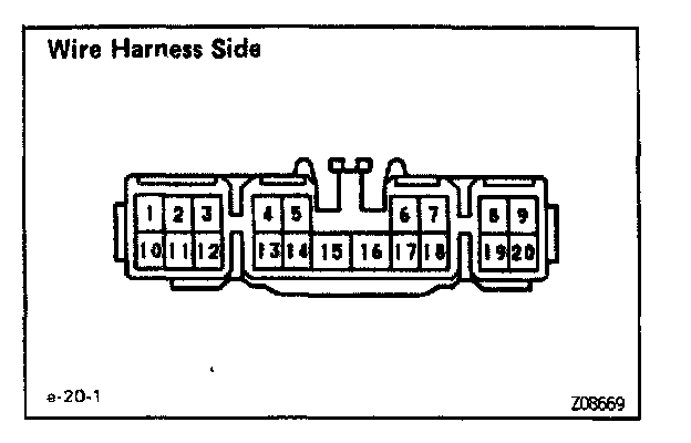 Disconnect the connector from the ECU and inspect the connector on the wire harness side, as shown.