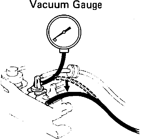 9. Check the vacuum switching valve (VSV) by disconnecting the hose between the VSV and ASV at the VSV side. Connect a vacuum guage to the VSV port, Fig. 46. Increase the engine speed to 4,800 rpm and check that the vacuum gauge indicates zero.